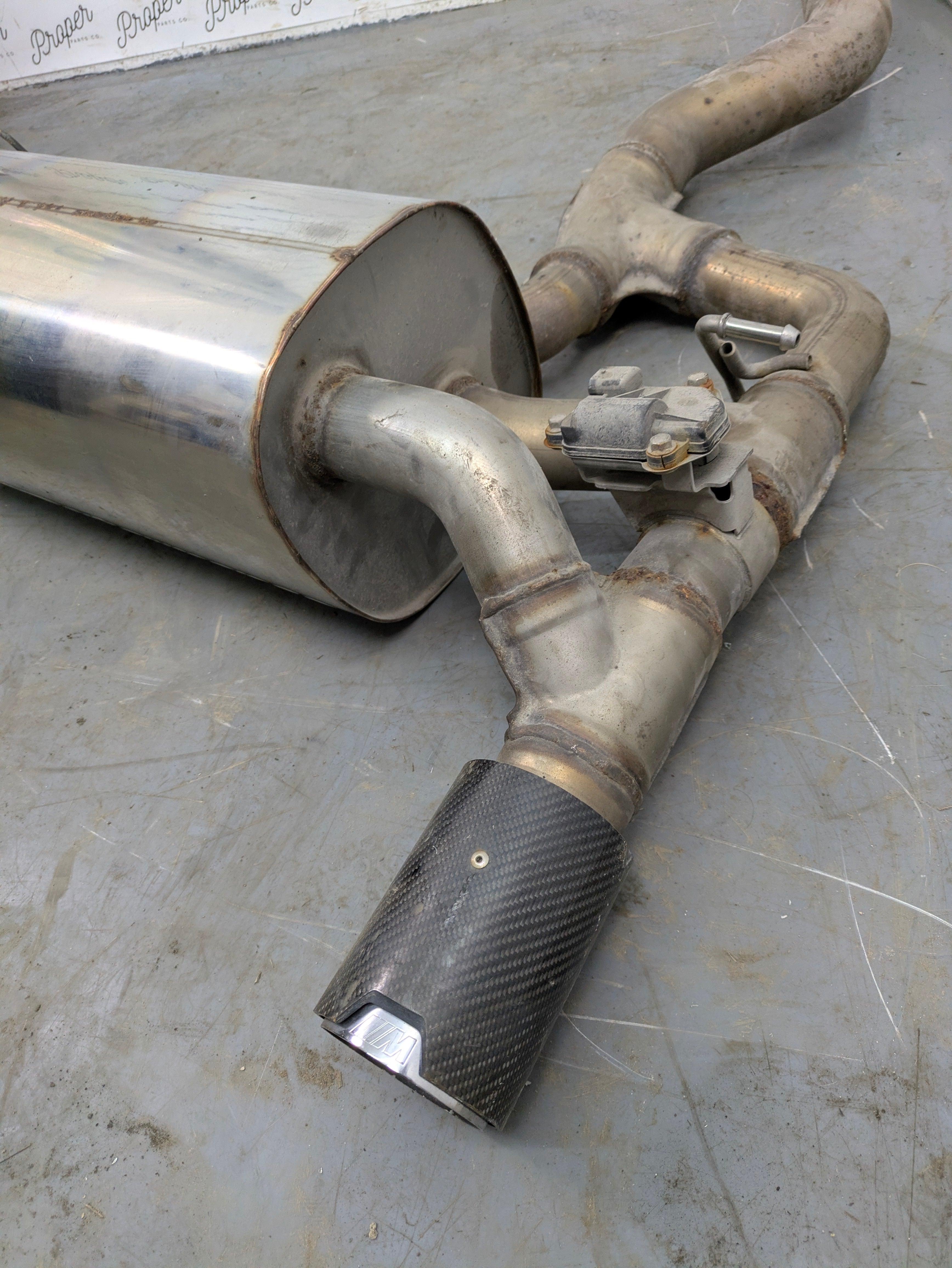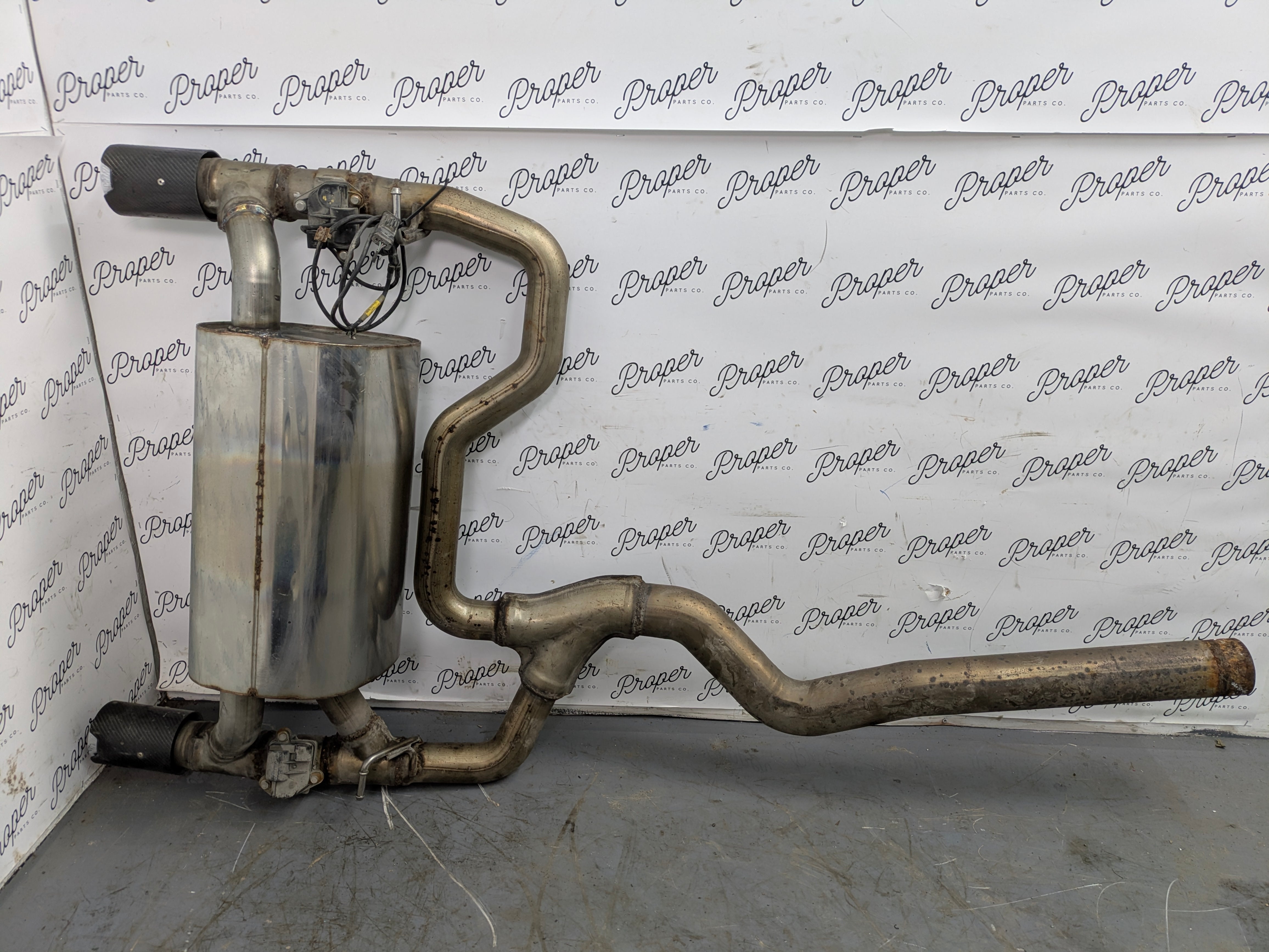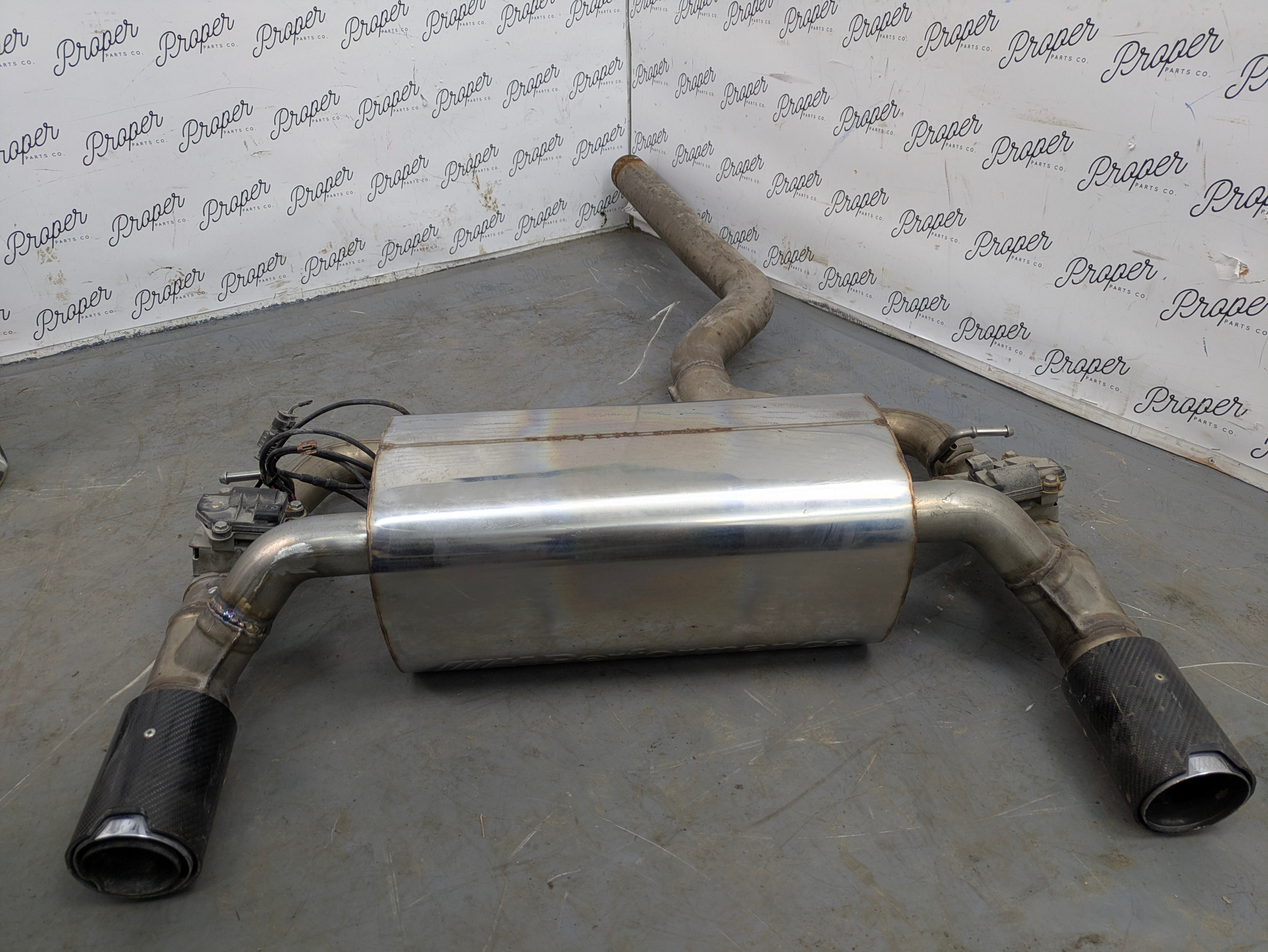 PLEASE NOTE: Muffler Has Been Repaired Around Left Side Of The Exhaust Pipe. No Dents On Muffler. 1 Tip Has Dent. Minor Scuffs. Includes Actuators, Wiring Harness, Tips.